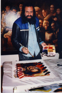 In 1996 Kaufman approached the Sinatra family to gain permission to paint Frank Sinatra’s image. Reportedly, the ailing Sinatra ran his frail hands over the completed paintings and nodded his appreciation, tears in his eyes. Kaufman was requested by Campbell’s to paint a limited edition in celebration of Campbell’s Soup’s 100th anniversary. He paints Muhammad Ali’s face on 500 boxing gloves and painted two Harley-Davidson motorcycles, one with a Campbell’s Soup theme and one with a Cohiba Cigar theme. Fidel Castro, Cuba’s leader, reportedly autographed the gas tank of the Cohiba motorcycle. Kaufman created a Muhammad Ali portrait for the 1996 Olympics. For the first time, Ali signed a limited edition with both his Muslim name (Muhammad Ali) and his given name (Cassius Clay).
